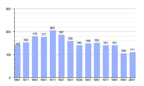 | Gráfica de evolución demográfica de Gifflenga entre 1861 y 2001 |