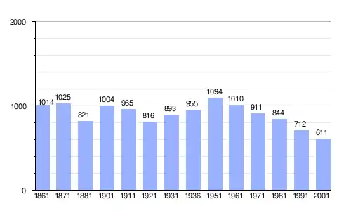 | Gráfica de evolución demográfica de Ginestra degli Schiavoni entre 1861 y 2001 |