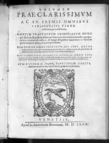 - Index librorum omnium iuris tam pontificii quam caesarei, Venetiis, J. Ziletti, 1566.