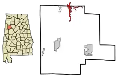 ![]() Ubicación en los condados de Fayette y Marion en el estado de Alabama ![]() Ubicación de Alabama en los EE. UU. | ||