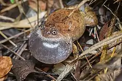 ![]() Macho de Glyphoglossus guttulatus cantando. | ||