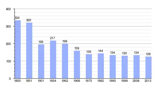 Los datos demográficos contemplados en este gráfico de la comuna de Granges-sur-Baume[4] se han cogido de 1800 a 1999 de la página francesa EHESS/Cassini, y los demás datos de la página del INSEE.[5]