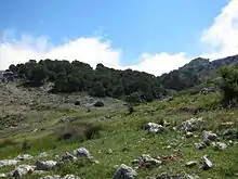 - Localizado en la margen derecha del barranco del arroyo de la Vega y cerca del barranco del Pozo, se ha de mencionar la presencia de pinar de repoblación en la variedad del pino carrasco.[21]