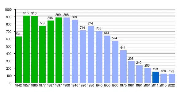 | Gráfica de evolución demográfica de Herrín de Campos[4] entre 1842 y 2022 |