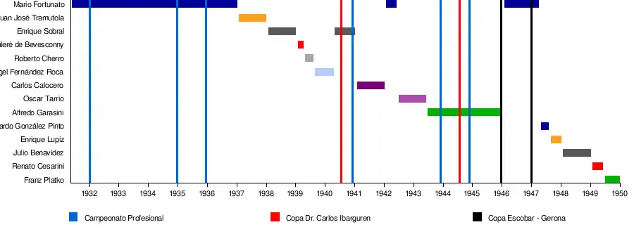 El máximo goleador de aquella gira fue Manuel Seoane, cedido por El Porvenir especialmente para la misma, quien marcó 12 goles y disputó 16 partidos.[43]