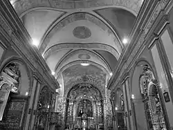 Las dos naves laterales de la iglesia están llenas de esculturas de santos colocados en retablos cubiertos de pan de oro, ante quienes cientos de fieles se arrodillan todos los días para implorar "intercesiones" milagrosas.[4]