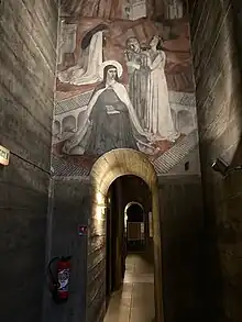 - Los siglos xiv y xv, incluida una imagen de Catalina de Siena delante del palacio papal de Aviñón y de los precursores del Renacimiento.