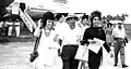 Llegada de las actrices Sandra Scott e Ivonne Yamile a San Andrés, para el rodaje de la película Isla de Ensueño. El Productor Ejecutivo Enrique Gutiérrez y Simón las recibe en el aeropuerto.
