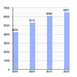 Cuenta con 6481 habitantes lo que representa un incremento promedio de 0.64% anual en el período 2010-2020 sobre la base de los 6086 habitantes registrados en el censo anterior. Ocupa una superficie de 1.901 km², lo que determina al año 2020 una densidad de 3408 hab/km².[8]