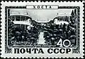 Sello soviético de 1949 en el que se ilustra el sanatorio VTSSPS nº3 de Josta.