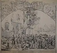 Litografía de David Levi Elkan que representa a varios estudiantes, y entre ellos, Karl Marx, en 1836.