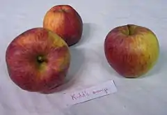 ![]() La variedad de manzana 'Kidd's Orange Red'. | ||