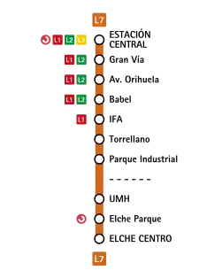 Aunque aún están por definir se sabe que la línea partirá de la Estación Central de Alicante, pasará por Babel, el IFA, Torrellano, el Parque Industrial de Elche, la Universidad Miguel Hernández, la Estación del Elche Parque y llegará al centro de Elche.