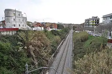 Línea Sant Martí de Provençals-Sant Joan de les Abadesses en Mollet del Vallès, mirando hacia Mollet-Santa Rosa y Barcelona.
