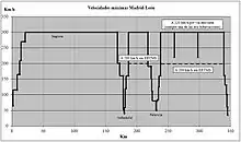 | Km/h | Inicio P.K. | Fin P.K. | Longitud (m) |