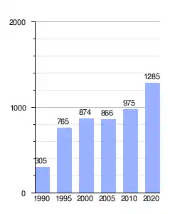 | Gráfica de evolución demográfica de Las Plazas entre 1990 y 2020 |