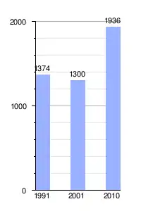 | Gráfica de evolución demográfica de Las Tapias entre 1991 y 2010 |
