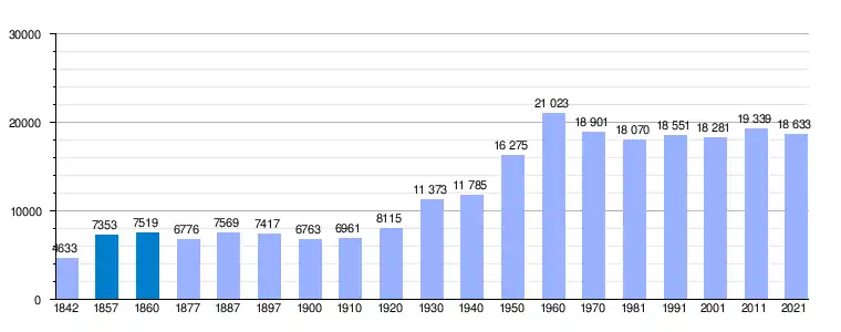 | Gráfica de evolución demográfica de Lora del Río[2] entre 1842 y 2021 |