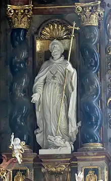 Magnus era un santo de la orden benedictina, por lo que su veneración se encuentra sobre todo en los monasterios benedictinos. En la región alpina fue venerado como santo patrón y ayudante de emergencia contra ratones, orugas y larvas blancas. La leyenda de Magnus se hace cargo parcialmente del culto precristiano de los lugares santos, el manzano cerca de Schwangau / Waltenhofen; la piedra de concha en Lusalten / Lechfall se convierte en el "paso Magnus". El personal de St. Mang recibió poderes milagrosos especiales.[3] Esto se solicitó a menudo al monasterio de Füssen para el control de plagas.