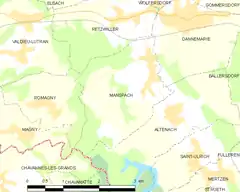 - Ubicación de Manspach y de sus comunas limítrofes en un mapa de Francia (enlace roto disponible en Internet Archive; véase el historial, la primera versión y la última).