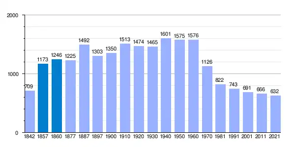 | Gráfica de evolución demográfica de Matilla de los Caños del Río[6] entre 1842 y 2021 |