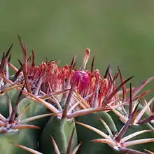 Melocactus: nombre genérico, utilizado por primera vez por Tournefort, proviene del latín melo, abreviación de melopepo (término con que Plinio el Viejo designaba al melón). Se distingue de las demás cactáceas cilíndricas por tener un cefalio o gorro rojo, razón por la que los primeros españoles que llegaron a Sudamérica le llamaban "gorro turco".