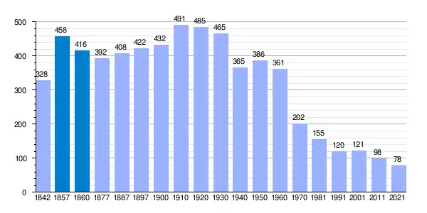 | Gráfica de evolución demográfica de Mirabueno[5] entre 1842 y 2021 |