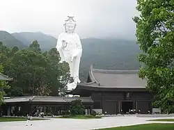 En el monasterio se encuentra una estatua que representa a un Guanyin (Avalokiteśvara) con una altura total de 76 metros de altura, de los que 70 corresponden a una estatua blanca fundida en bronce y 6 metros a una base de granito que incluye una plataforma de loto de bronce de tres niveles) construida sobre la propia base. La estatua está recubierta con pintura blanca autolimpiante de perfluorocarbono y está inspirada en esculturas de la dinastía Song.