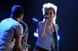 En la mayoría de sus presentaciones en directo, la cantante estuvo acompañada por el saxofonista Basasteanu en el escenario.[63] Stan interpretó la canción en el evento francés Starfloor 2011,[64] y en el espectáculo alemán Ballermann Hits a finales de 2011; esta última aparición fue polémica ya que la cantante mostró por accidente partes de su vagina.[65] También presentó «Mr. Saxobeat» en los Eska Music Awards 2011,[66] en el show de música alemana The Dome[67] y una versión acústica en el programa de televisión alemán ARD.[11] La canción también estuvo presente en la lista de varios conciertos que sirvieron para promover su álbum Saxobeats.[4] Versiones de la pista fueron hechas por la cantante rusa Lena Katina como una versión acústica,[68] la banda de pop estadounidense Selena Gomez & the Scene durante su gira We Own the Night Tour (2011–12) en América Latina,[69] y el cantante dominicano Omega,[70] cuya versión alcanzó el puesto número 25 en la lista Latin Digital Songs de Billboard.[71] «Mr. Saxobeat» también fue grabada por Alexandra Stan Tribute Band, alcanzando el número tres en la lista Digital Songs de Luxemburgo.[72] En julio de 2021, Strange Fruits Music, Steve Void y DMNDS lanzaron su propia versión.[73]