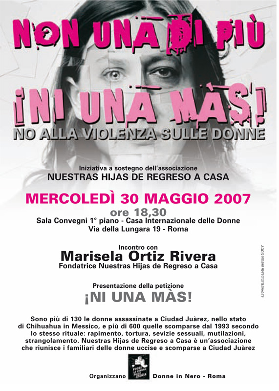 - «Ni una más, no a la violenz sulle donne» (en italiano). 30 de mayo de 2007. Consultado el 17 de abril de 2016.