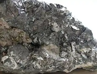 Suele encontrarse asociado a otros minerales como: arsenopirita, plata nativa, bismuto nativo, calcita, siderita, barita o cuarzo.