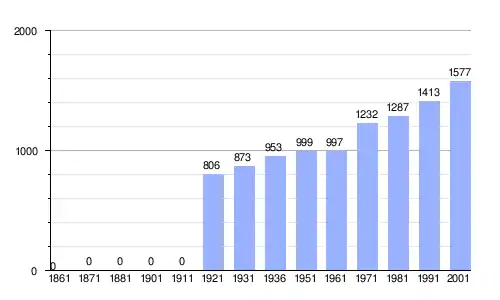 | Gráfica de evolución demográfica de Nalles entre 1861 y 2001 |