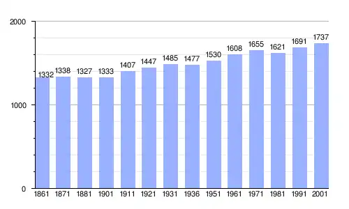 | Gráfica de evolución demográfica de Narbolia entre 1861 y 2001 |