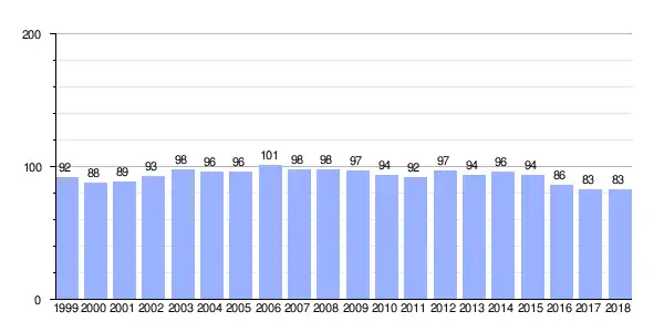 | Gráfica de evolución demográfica de Nogueiras entre 1999 y 2018 |