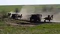 Obuses M777 del Ejército Ucraniano remolcados por camiones KrAZ-6322 en algún lugar del este del país durante la Invasión rusa de Ucrania del año 2022