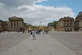 ![]() Vista del palacio de Versalles desde el patio de honor, con el pabellón Dufour (izda.) y el ala Gabriel (dcha.9 | ||