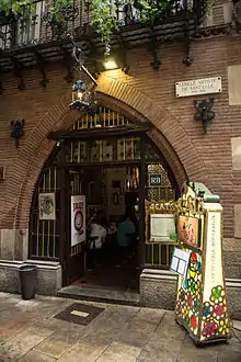 Abandonado el propósito de vivir en Madrid para dedicarse a copiar a los grandes maestros, en febrero de 1899 estaba de vuelta en Barcelona,[26] donde comenzó a frecuentar la cervecería Els Quatre Gats, insignia de la bohemia modernista y lugar en el que realizó su primera exposición individual e hizo amistad con Jaime Sabartés y Carlos Casagemas. En este ambiente Picasso entró en contacto con el pensamiento anarquista, implantado en Barcelona. La miseria reinante en los barrios bajos de Barcelona, los soldados enfermos y heridos que volvían a España tras la desastrosa guerra de Cuba (1895-1898), crearon un caldo de cultivo de violencia social que marcó, a un nivel individual y moral más que puramente político, la sensibilidad de Picasso, y que pueden ser apreciados en ciertos dibujos realizados entre 1897 y 1901: El prisionero, Un miting anarquista.[27][28]