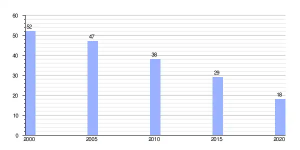 | Gráfica de evolución demográfica de Pacios de la Sierra (parroquia) entre 2000 y 2020 |