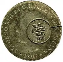 Sin embargo, después de la derrota en la guerra hispano-estadounidense de 1898, en 1899 España las vendió[33][34] al Imperio alemán[35] junto con el resto de las islas Carolinas por 25 millones de pesetas.[36] A modo de testimonio histórico de la ocupación alemana de Palaos se utilizó en el año 1899 un punzón circular que se estampó sobre monedas de 5 marcos, pesos filipinos del rey Alfonso XIII y táleros de María Teresa I de Austria. Esa contramarca contenía una leyenda que hacía referencia al emperador Guillermo II de Alemania (Kaiser Wilhelm II) y fecha 1899.[37]