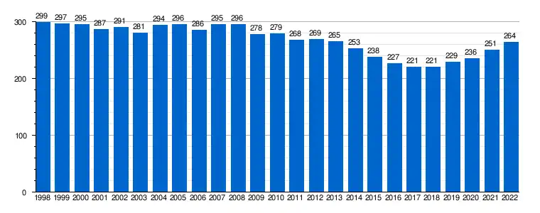 | Gráfica de evolución demográfica de Perales del Alfambra[8] entre 1998 y 2022 |