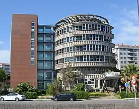 Fue construido en 1967 según el proyecto del arquitecto Xosé Bar Boo, con un diseño circular en su día muy innovador.[3] En el año 2006, se le añadió un anexo de un estilo completamente distinto. En 2020 fue adquirido por Ibermutua Gallega para reconvertirlo en un centro integral de servicios asistenciales y administrativos.[4]