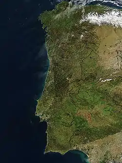 Los cartagineses llegaron a la península ibérica el s. III a. C. atraídos por sus recursos mineros, pesqueros y por la reputación de los guerreros íberos. Ocuparon el sur de Portugal y, aliados con los lusitanos de origen celta, formaron la primera resistencia a la invasión romana de la península. No obstante, tras las guerras púnicas los cartagineses fueron derrotados y los romanos incorporaron la región a su imperio como Hispania, a partir de 45 a. C.[23] Tras la disolución del imperio romano en el s. V d. C. Lusitania fue invadida por pueblos como los suevos, los vándalos, los alanos, los burios y los visigodos hasta que, finalmente, fue conquistada por los árabes. En 868, durante la Reconquista, se formó el condado Portucalense, que fue incorporado al Reino de Galicia en 1071.[24]