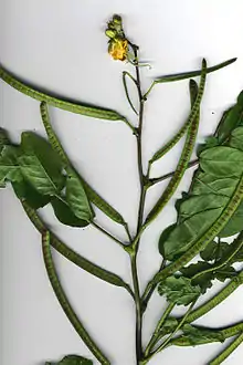 - Un linimento a base del fruto y decocciones de la raíz se aplica tópicamente para tratar llagas, heridas, tumores y cáncer;[20][25] un ungüento de la hoja y fruto se usa para tratar la sinusitis.[26]