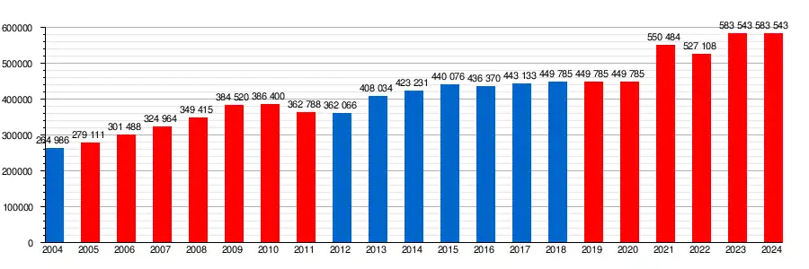 | 2023 | 583 543 | 1 462 070 | 39,9 % |
