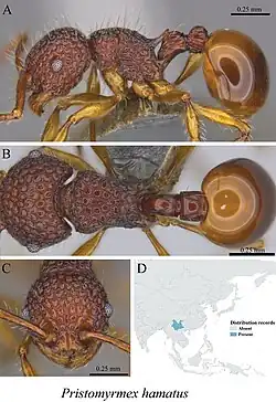- Pristomyrmex hamatus Xu & Zhang, 2002