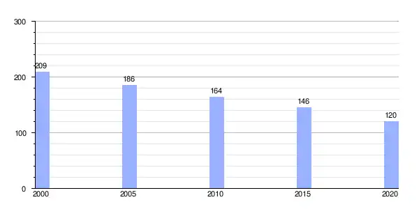 | Gráfica de evolución demográfica de Rececende (aldea) entre 2000 y 2020 |
