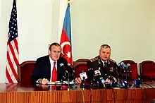 - «Speech of the Azerbaijan President Heydar Aliyev at a meeting, held at the US Naval Academy, during his visit to the United States of America - 23 de april de 1999». lib.aliyev-heritage.org. Consultado el 29 de abril de 2018.