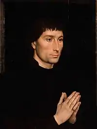 El retrato de medio cuerpo muestra a María Portinari (nacida en Florencia como Maria Maddalena Baroncelli en 1456) en una vista de tres cuartos girada a la izquierda.[1] Tiene unos rasgos algo nórdicos, y está vestida a la última moda de la alta sociedad flamenca. Está colocada contra un fondo liso, opaco y oscuro, con las manos unidas en oración. En los primeros retratos de Memling los fondos tienden a ser lisos y oscuros, como era invariablemente el caso en los trabajos de Jan van Eyck y Rogier van der Weyden, y favorecido en los círculos de la corte borgoñona. En contraste, los retratos posteriores de Memling serán puestos ante ricos interiores o paisajes enmarcados por columnas, como en su retrato de Benedetto Portinari, un hecho que ayuda a datar su trabajo.[2]