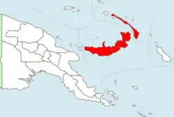 La especie es endémica de las islas Bismarck, ubicadas al noreste de la isla de Nueva Guinea y perteneciente a Papúa Nueva Guinea.
