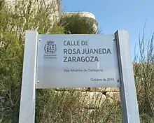 ![]() Placa en homenaje a Rosa Juaneda en el casco antiguo de Cartagena. | ||